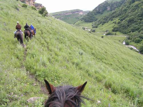 А! дело было на Кавказе, недалеко от Минвод. База называется «медовые водопады» и нам там очень понравилось! Лошади местные, видать в родстве с горными баранами, во всяком случае, по горам, где бы я побоялась пройти пешком, они карабкаются весьма лихо!