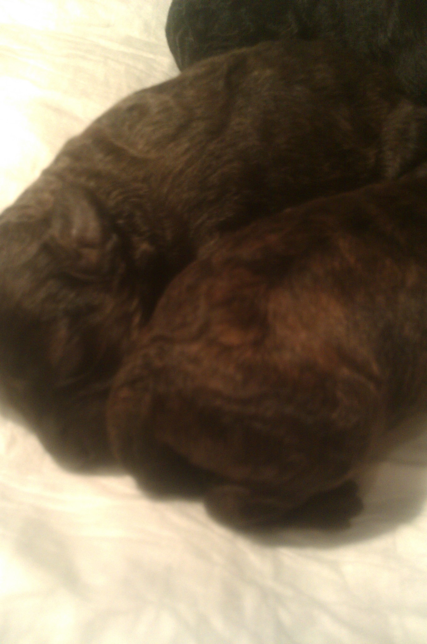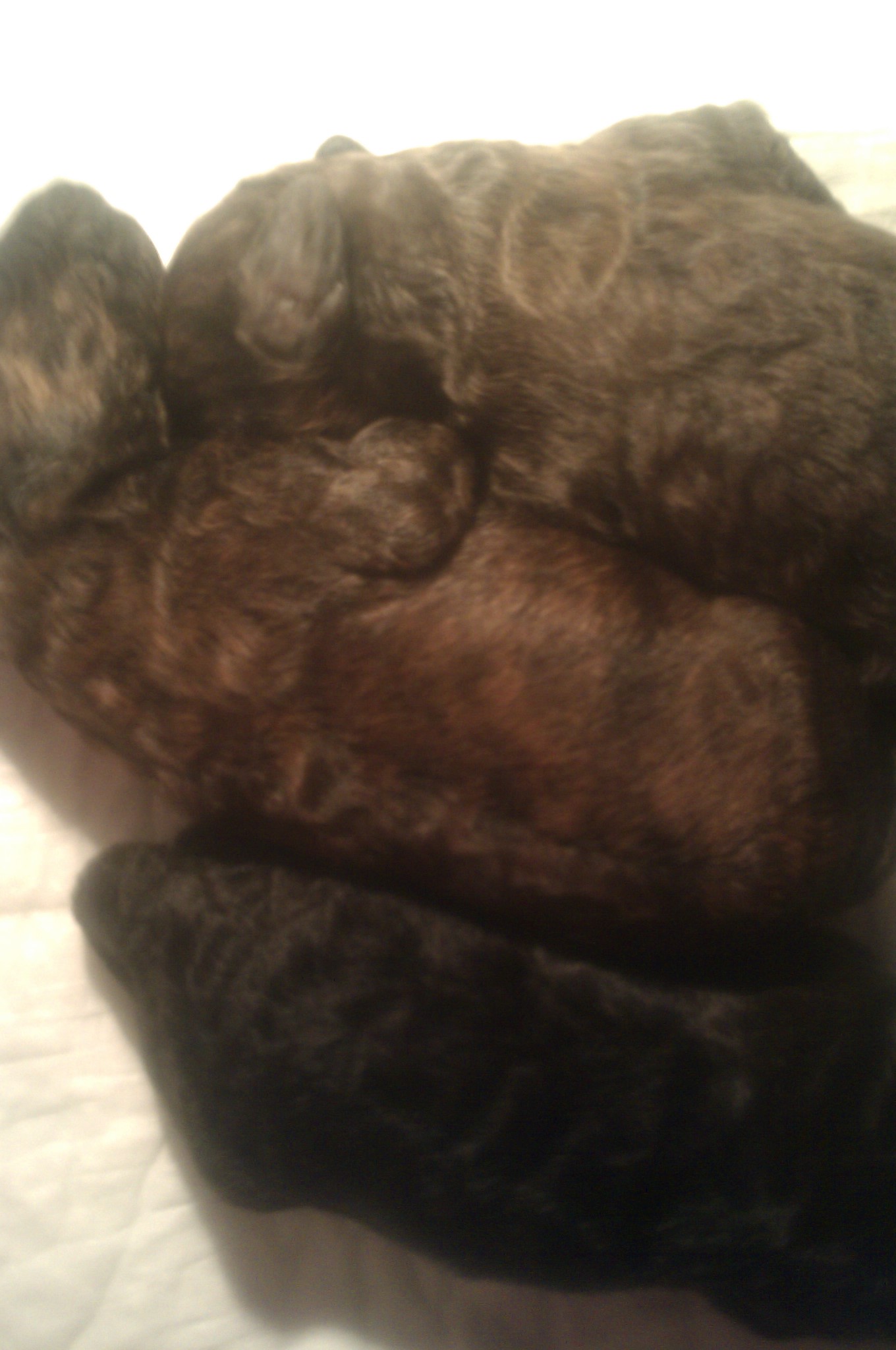 - Ань, он когда вырастет, будет обычным соболем, только с коричневым носом. Основной окрас будет светлый крем, а концы - чуток коричневато-рыжие (на несостриженной части)...
