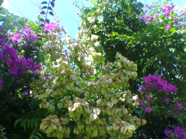 Спасибо, Ворожея, а вот ещё пару фоток снятых возле дома - это плоды акации вперемешку с цветами бугенвилии...