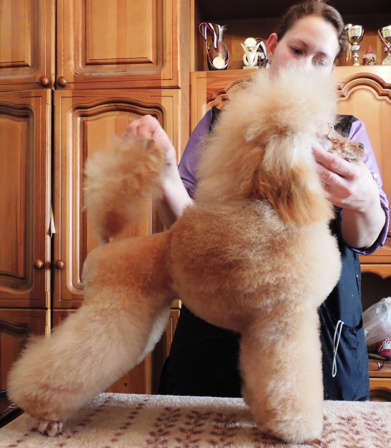 Svaiya, Спасибо, друзья! А Мальта, между тем, побывала на крупнейшей выставке в России - "Евразии". Конечно, глупышка ещё совсем, ведь ей только-только исполнилось 9 месяцев и она только поменяла статус щенка на статус юниора. Но, определенные успехи все же были. В процессе подготовки к выставке накануне. Мордочка ещё не брита. Татьяна очень хорошо Мальту подстригла, спасибо ей большое. _______________________________________