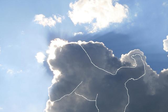 А если посмотреть на последнее фото "тучи", то можно увидеть той или карликового пуделя. Мордочка и лапка слева, а справа хвостик, задняя лапка как бы в "тени", но разглядеть можно. (на серой туче).