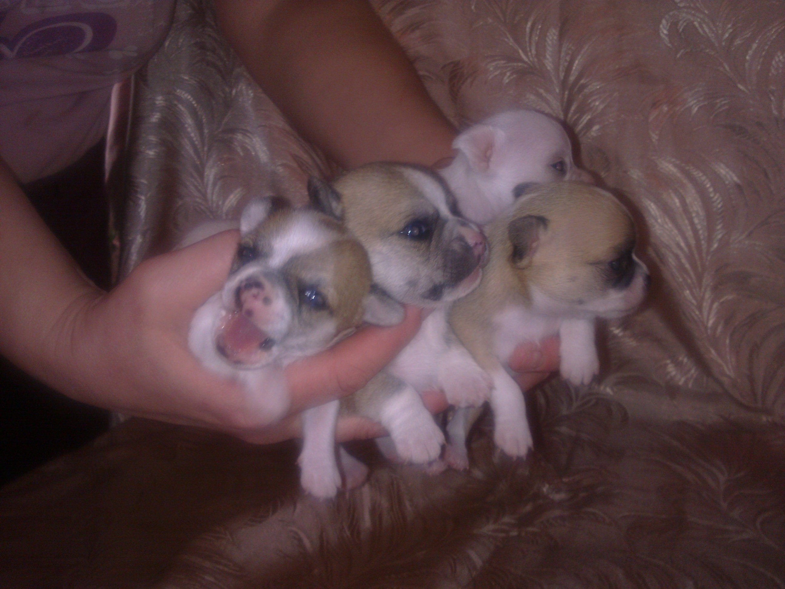 А еще у нас дома подрастает - вот такое чудо. А начиналось так просто. Супруг себе на 50 летие попросил в подарок чишку и понеслось...... Дома теперь 4 дамы и предводитель -Жорик. Занимается чишками супруг. Им разрешается очень многое..... Как говорится их балуют по полной. Мне с пуделями приходится иногда эту банду тормозить. Обид потом ....