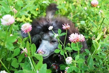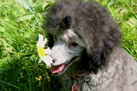 А мой Дэн тоже любит всякие разные цветочки нюхать. Прямо мимо них пройти не может.