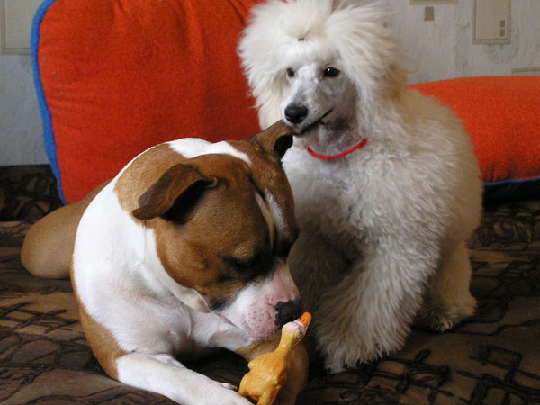 копалась в старых фотках..и вот нашла..нянечка моего Бигги (тут ему мес 6) стаффбулиха Хря)