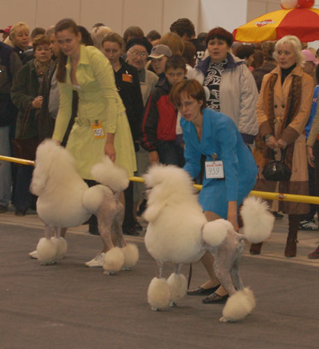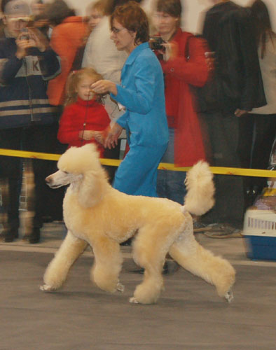 Хихик, у меня опять глюкнулся комп, глюкнулся он кардинально и опять пришлось перерегистрироваться, как я уже только не извращалась на эту тему после очередной поломки, т.к. все пароли я есессно всегда забываю. Всех-всех-всех сердечно поздравляю с победами и победищами!!!!!!!!!!!! Зями, молодцы! Мисс Мира, также мои поздравления! Иришка, Фиончик, Бигуса поцалуй тож. молодчины! Ну а мы тут скромненько так отметились на Всероссийке, причем с таааааааааааааааааааааким и приключениями. ой мамадорогая Все мои предыдущие подвиги просто померкли по сравнению с этими. Короче мы пришли прицельно закрыть ЧР Глашуше и в опчем то сбечь сразу к беремешной, получили свою САСку и успокоились...до сравнения, дальше мы сравнились и получили ЛПП и Ч федерации, ну лана , думаю, это уже ваще все великолепно и на Бест я не пойду.............щаааааааааааа аааааааааааз, решило наше РКФ, пойдешь как миленькая, правда я исчо об этом не знала и поехала спокойненько домой к беремешной девушке, приехала на другой конец Москвы и вспомнила, что мне кой-чего нать на выставке и поехала обратно. Приезжаю, а мне грят, что как раз по регламенту выставки я обязана предъявить собачку на Бест, иначе.....................тут у мине усе помутилося, я понуро побрела, но в голове уже зрел безумный план по доставке собачки на Бест (а Бесты уже практицки вот-вот........), в опчим в полубессознательном состоянии я доехала таки до дому, оттуда схватила машину, мужичок обещался применять санкции по ходу движения, ибо видел, что руки и ноги мои уже немеют от ужаса, что я не доеду к Бесту , вооооооооооооот приехали мы без резинок, без расчесок, но к группам , стрельнули резиночек и в Бест и........хихик тут из многочисленной девятки судьба просто благоволила к пуделям в этот день, в опчем мы третьи, белый малый второй и черный король первый! Всех поздравляю! Спасибо за неоценимую помощь всем, кто там был, особенно хочу поздравить Алору и Пружинку, вернее ее черную малую девлчку с ЛЩ выставки! И еще огромное спасибо Оксане Кошелевой и Элле Зайцевой за поддержку моральную! Верочка, поздравляю тебя с рыжиками, удачиииииииииииииииииииии иииии!!!!!!!!!! И к слову о призах - призы великолепные просто для группы, иногда за место в группе кубочка не дождесси, а тууууууууут роскошество!