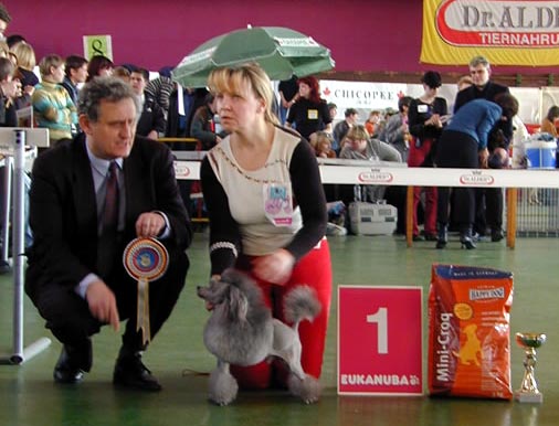 Елена Старчак,у меня одна серебристая тойка.В её родословной крови питомника Очарование с одной стороны,и крови Василька(Терентьевой Веры) с другой.Собака неплохая,но пока у нас только 2САСа,и на одной выставке среди всех пород заняла 2место.У неё уже был ребёнок от Ветра Перемен из Троицкого Предместья-малыш был классный, но попал не в выставочные руки. Ну, а ещё у меня белая тойка от Целлозии из Белой стаи и Найс Тимми.Она у нас Чемп. Бел.,а сейчас у неё первый ребёнок от Роскошного Кавалера из Троицкого предместья.Я его фото поместила в белых.И третья собака-карликовая красная пуделица.У неё крови Бибилот, Бартлос Анмут,Балинго и Мандарина.