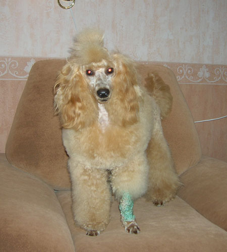 Нашей модельке тоже пришлось недавно сделать несколько капельниц. Всё обошлось. Но шерсть сбривать даже поползновений не было у медперсонала. Всё сделали очень аккуратно и бережно. Вот наша моделька. Очень хрупкая девчушка, поэтому в шутку так и называю... Roza добавил(а) [date]1217372842[/date]: В принципе Мартинка на самом деле - модель. Уже третий раз служит манекеном для тех, кто заканчивает обучение на курсах по стрижке у Светы Никитиной)))). Roza добавил(а) [date]1217372947[/date]: Фото называется: "Света, я точно свободна?"