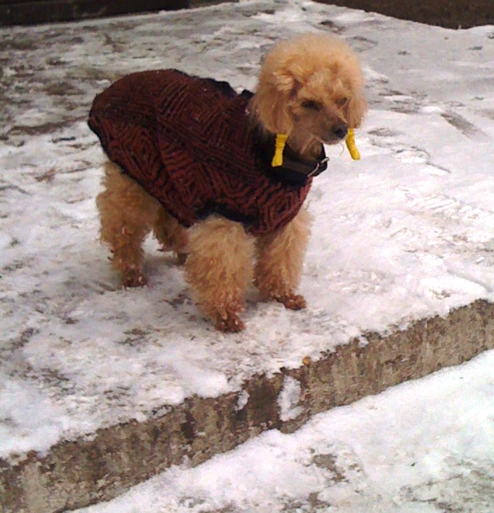 Lara,я смотрю у вас уже настоящая зима! У нас тоже снег,но его ещё немного,т.к.стояла плюсовая тем-ра,то снег шёл и тут же таял,а сегодня наконец уже морозец лёгкий,сейчас -5,так мы сегодня гуляли,Чипку приодела,а Патти пока на легке бегает,погодка сегодня классная,собанькам(да и мне тоже)такая очень нравится)))