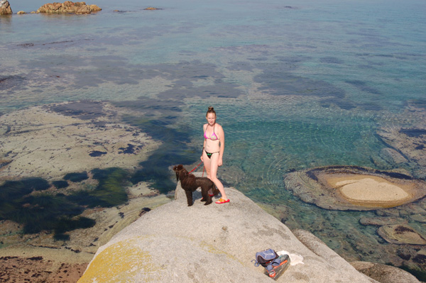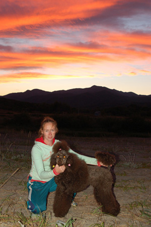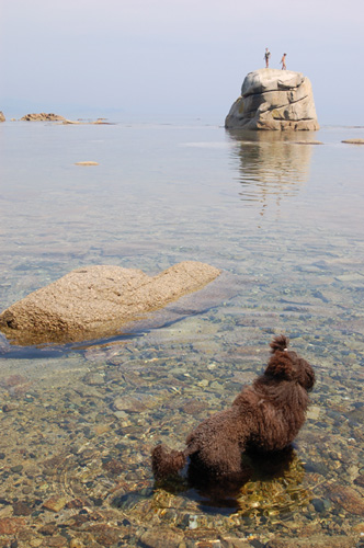 ПРо шерсть.....старалась не пускать в воду и на песок особо не разрешала ложиться (все окружающие конечно с меня смеялись-ругались, что я не даю проходу собаке ) А потом ездили где была речка. Вот это просто спасение после солёной воды! Действительно шерсть мягкая-пушистая-легко расчёсывается. Спреи никакие не пользовали.... Дома мыться-вычёсываться конечно приходилось капитально.А вот камни....... я просто не узанавала свою собакенцию :) Иной раз она мне напоминала горного козла или кого-то в этом роде! Мы пошли гулять по побережью и там надо было идти везде по большим камням (сейчас фоты покажу), так вместо того чтобы наступить 2мя (!) ляпками в воду, она прыгала на отвесную скалу, цеплялась чуть ли не коготками и шла дальше!!!! Так что выходки вашей Кнопы вполне оправданы Правда к вечеру у нас упал хвост! Не встаёт и не виляет, а на попу плохо садится собе! Я в панике естественно! К утру получше.... на след.день всё прошло Вот так и отдыхали :) Лягушки-путешественницы