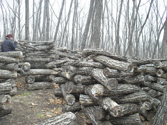 Плантация - подозреваю, что это китайцы или корейцы выращивают грибы, сиитаке (шиитаке) называются.