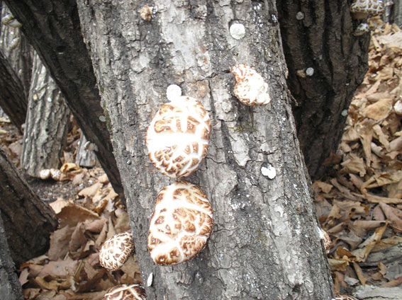 Я видела в Японии, грибы эти растут на похожих чурбачках, установленных рядами в лесу или в тени.