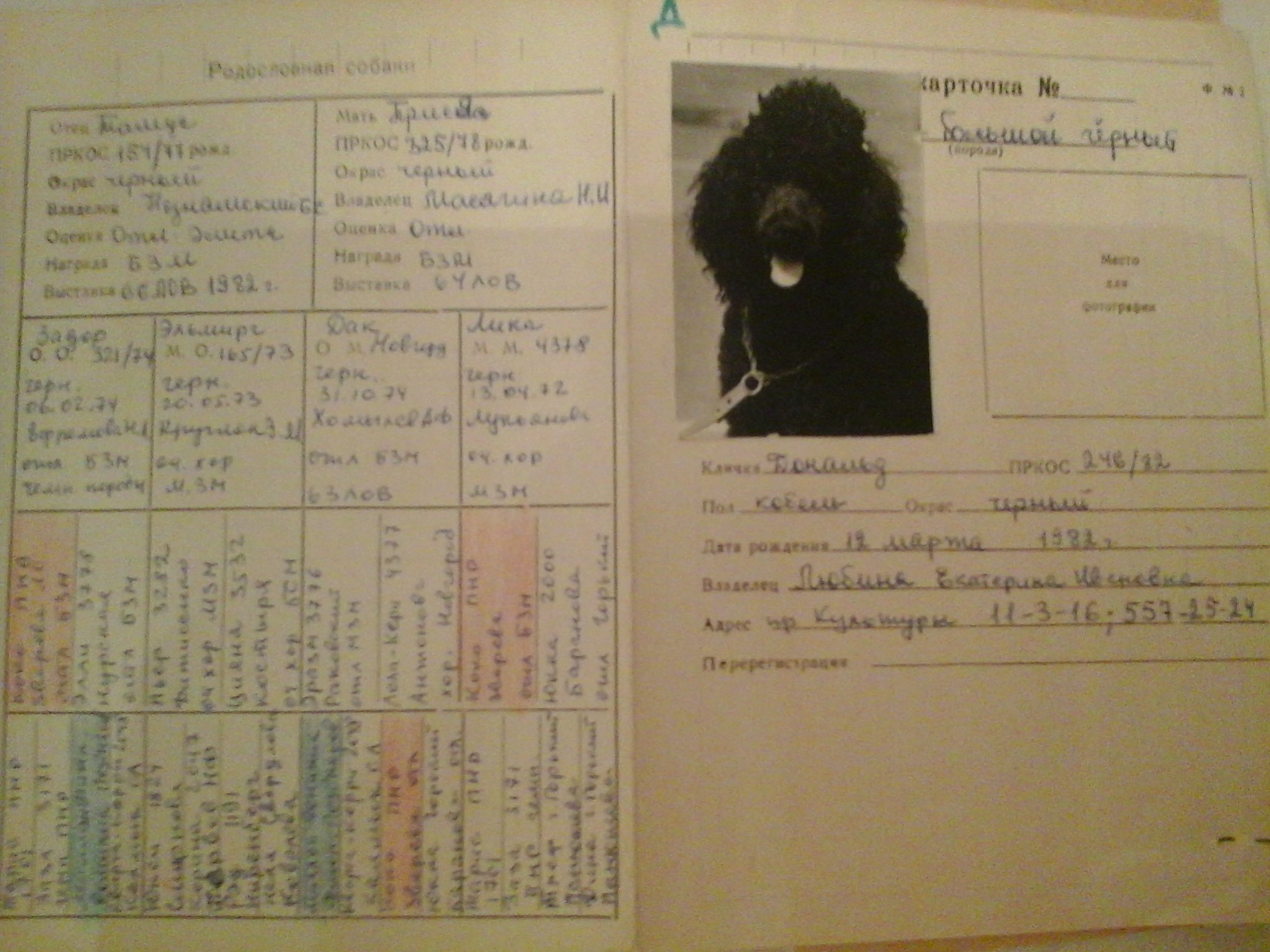 В учетную карточку заносились все однопометники и все результаты выставок: