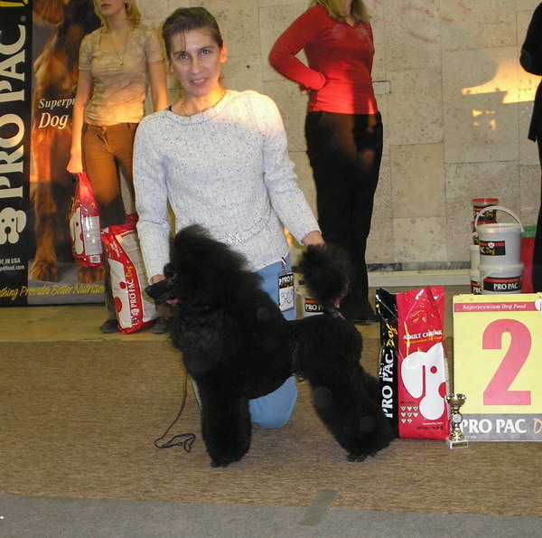 А в Москве, в спорткомплексе Динамо прошла выставка "Кинология". Из пуделей второе место в группе занял Варминг Блэк Экстрим: |