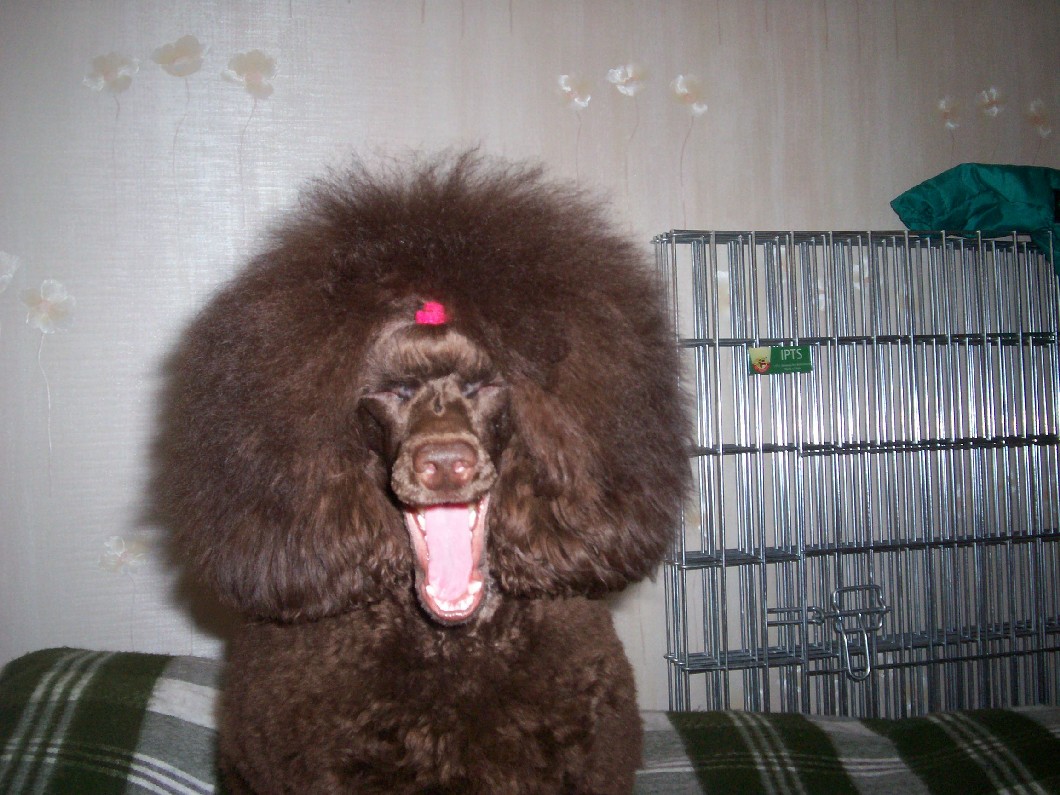 Вика,Хаджи в апреле будет три года.Его Отец Янг Файст,который шоколадный в свои 12 лет и про которого я уже говорила,и который является отцом и моей чер. Любочки,и чер. Соломеи,и 80 процентов моих черных малых.А мать Хаджи,Кикки Золотая Маргоритка является потомком Фаворита Ф.Д.Пудельхё.Хаджи 40 см.Его брат Хан Шоколад Из Ворожеи шоколадный,как и отец,имеет три юных титула,крававец,42 см ,не выставляется по вине хозяев.Хаджи имеет окрас с сединой,но не светлый,хороший такой.