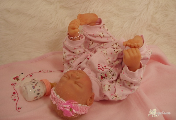 This generic, manufactured play doll kit has been transformed into a lovely, realistic baby and a true collectible by the process of "newborning". Only an original sculpture should be considered a One-of -a-kind (OOAK) however; Emma is a highly unique and individualized presentation~and a baby that you can truly cherish. Please note that Emma is NOT suitable for children.