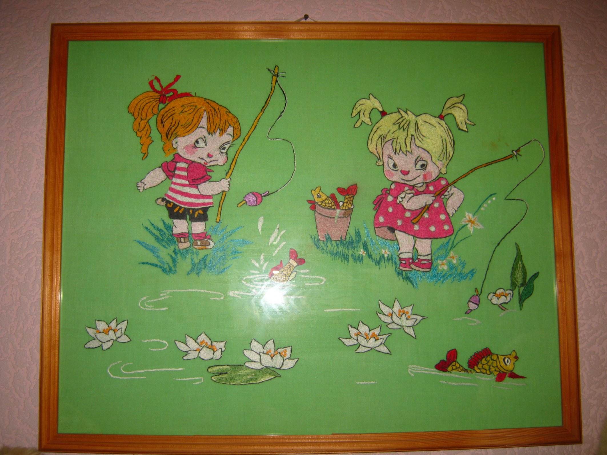 Какая красота! Ну, поскольку я сама вышивать не умею, покажу вышивку моей бабушки, она очень любила вышивать, обожала мулине. Просила меня купить ей красивые открытки, чтоб с них срисовать сюжет для вышивки. А срисовывала один в один, не отличишь. Вот нарисует и сидит, вышивает гладью. Еще она крючком вязала кружево.