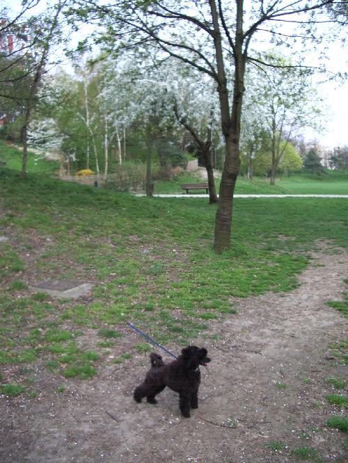 А идидж ты видно под цвет собачек выбираешь))))))))) эх, вышлю тебе свою Дорищу - хочется на тебя и брюнетку посмотреть)))))))))))) А я сегодня специально в парк опять поперлась - с вами поделиться))))))))) Здесь вишня в цвету и выставочкя стойка моего добера... _______________________________________