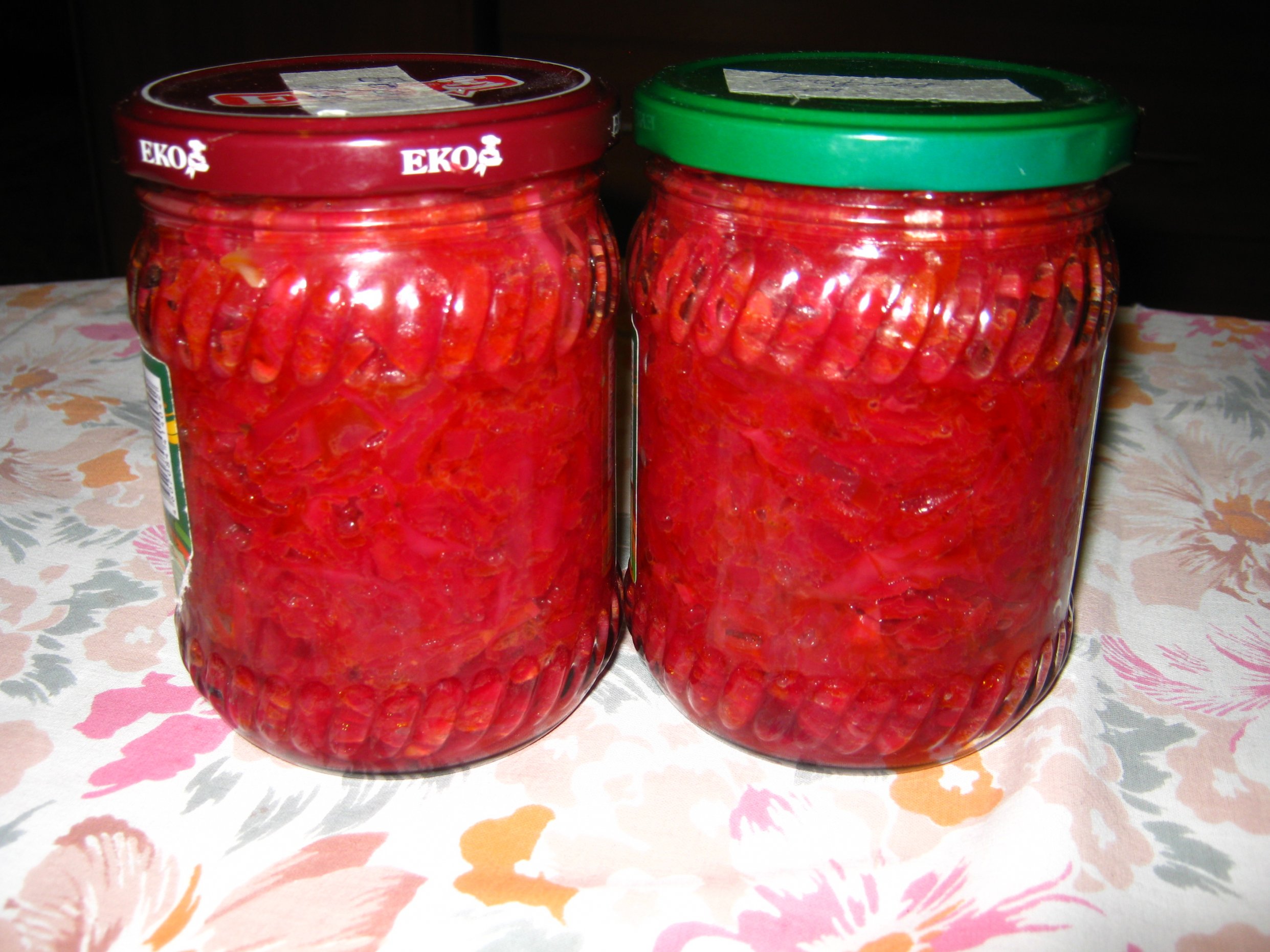 Борщ из банки это овощи готовые. А потом бульон сварить, туда картошечки и содержимое баночки и борщ готов. Там свекла, капуста, морковь, лук, перец болгарский, помидоры, чеснок, масло подсолнечное. Цвет насыщенный бордовый! Как салат это очень вкусно, я попробовала и в сыром виде, перед тем, как варить, и когда все было готово, в банку не влезло и мы тоже попробовали, как салат просто супер. _______________________________________