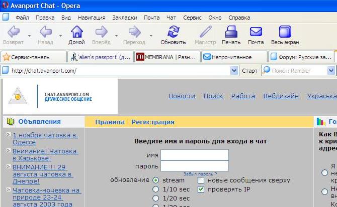 а чё ему станеца? Сноу, ты таво, не в службу а в дружбу, глянь, твоя Опера ентот чат открывает аль нет - ежели да, так я тады точно на неё перейду...