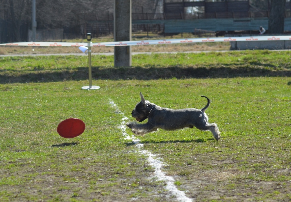 После аджилити были показательные выступления по дог-фризби. Я сама его как-то проглядела, занимаясь другими делами, только потом на форуме снимки посмотрела. Из-за сильного ветра летящие диски собакам ловить было трудно, поэтому в основном им катали роллы. Очень эффектны были борзые уиппеты - грациозные, стремительные, прыгучие, ловучие... Участвовал даже мастино - неторопливо для других, но очень быстро для себя, он целеустремленно двигался к цели и успешно ее достигал! Практически все аджилисты показали себя во фризби... кроме нас с Мэги. Но мы это упущение собираемся наверстать и уже заказали себе диск, который должны привезти наши собачники, выезжающие на выставку в Казань 9 мая. |