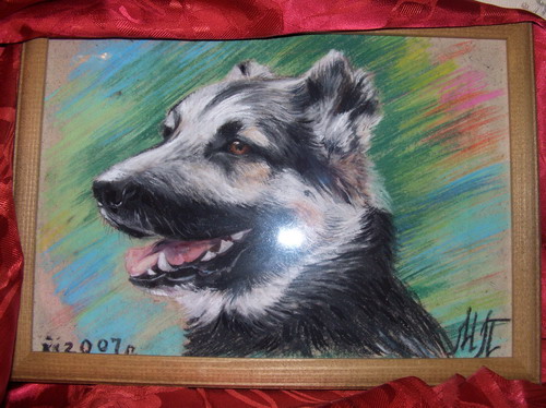 У нас с Катей тоже есть работы с др. породами. вот портрет коккера нарисован постелью .