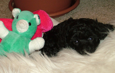 У меня щеночки так редко бывают... Полазила по фоткам, повспоминала... Вот так это было ![]() Их всего двое было а я с какого-то перепугу им веревочек навязала... Мальчик и фефочка