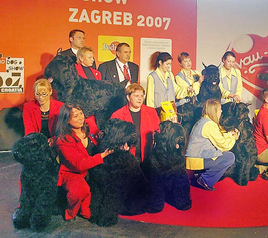 Предварительный потому, что данных по всем конкурсам на официальном сайте ЕвроДогШоу все еще нет.... Итак. BIS 1. Немецкий дог из Италии 2. Бобтейл из Венгрии 3. Афган из Швейцарии. Да, тут нам ничего не досталось... Но посмотрите сколько российских и "постсоветских" собак в расстановках разных BISов и BIGов. ========================= BIS BABY пятница - BISB - грейхаунд вл.Онучина и Галиакберова (Эстония) суббота - RBISB - такса миниатюрная вл.Никитин и Хапаева (Россия) воскресенье - III- минпин вл.Арефьева (Россия) ========================== BIS PUPPY пятница - BISP - шелти вл.Корна (Эстония) воскресенье - BISP - мин.шнауцер вл.Матвеева (Россия) =========================== JunBIS пятница - JunBIS - лхаса апсо вл.Рубикайте (Литва) воскресенье - JunBIS - ньюфаундленд - вл.Заливако (Беларусь) RJunBIS - шпиц миниатюрный вл.Денисова (Латвия) 3 - Кане Корсо - вл.Корниенко (Россия) ============================== BIS Vet 3-место Ризеншнауцер вл.Демьянов и Вихлянцева (Россия) =============================== RBIG 2 (второй после дога, взявшего потом BIS всей выставки) - ризеншнауцер Gently Born Heart Breaker вл.Власова (Россия) RBIG 5 - шпиц миниатюрный вл. Денисова (Латвия) BIG 9 - несравненная КАЛИНА с Цветочной Поляны и Ольга Архипова (Россия) ================================ Кроме того, много российских питомников и пар участвовали в конкурсах все три дня выставки. Официальный сайт пока молчит о результатах. Но вот оттуда же фото - Победители конкурса питомников третьего дня выставки- пит-к "Джентли Бон" ризеншнауцеры и 2-е место - пит-к "Малаховский" - русский черный терьер. ===================================== _______________________________________