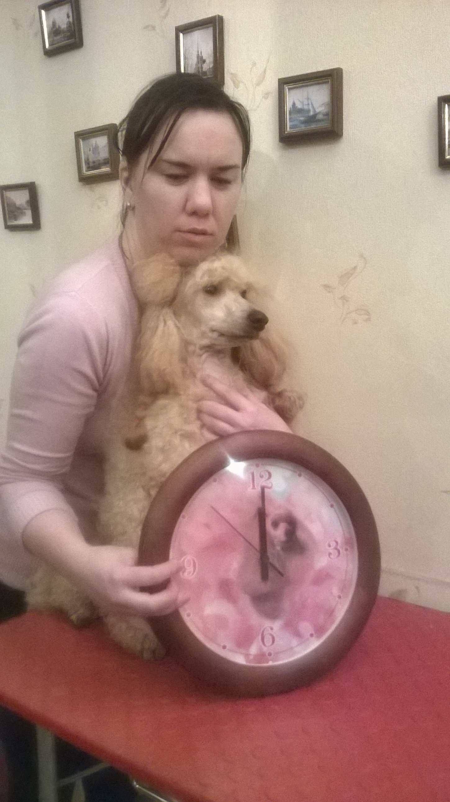 Фото честно, я стащила с ФБ. Долго думала стоит ли часы. Но раз ник у моей Снегурки совпадает с кличкой любимой собаки. Да еще она любит абрикосовых пуделей- поэтому решилась. Рада что понравился мой подарок. Мы с моими мальчишками очень старались.