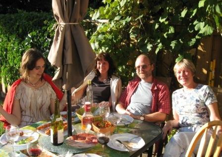 Справа - налево: Лена Гордеева, Иннокентий, Елена и Александра Масленниковы. А еще один мой внук Святослав за кадром так же как и любвеобильный Кузя с мамкой Нюшей. Пёсы очень лезли целоваться и мешали степенному течению дружеского ужина на свежем воздухе. _______________________________________
