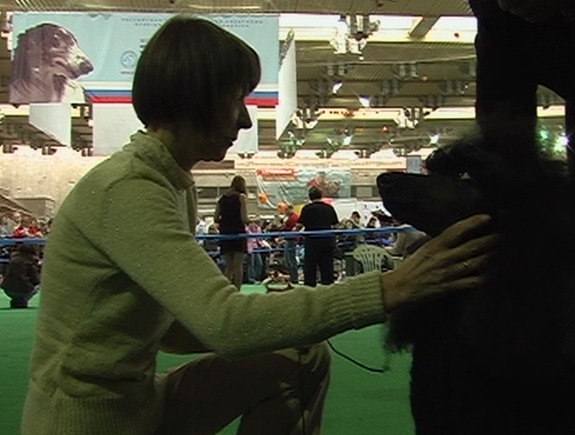 Да, участие было приятным. Пока Тармо тщательно описывал участниц открытого класса, мы с Диной, уже к тому моменту описанные, успели обсудить кучу проблем. Юста в это время стояла как памятник. Как только мы поменяли диспозицию в сторону знакомых, стоящих за рингом, памятник вдруг живо заинтересовался присутствием любимого Игоря, знакомым плачем Женькиной годовалой дочки и проч... Ну сколько можно стоять столбом, ну дай повертеться. Юстина непосредственность так и лезла из нее. Пришлось нарушить первый закон правильного хэндлинга "Ринг это апогей счастья" и шлепнуть мою крошку по аппетитной круглой бритой попе. Юся пришла в чувство. Так эмпирически был выведен второй закон правильного хэндлинга "Вовремя заданный шлепок не вреден".