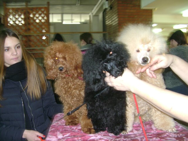 Добрый день. Спасибо Лена за фото. Это мы на выставке 22.02 14г. Наши успехи --- У Боника САС юниора и большая перспектива у щенка. На фотографии где две юнные леди -это группа поддержки и обучающий курс молодого бойца. Девочки готовятся к выставкам. На фото всем моим щенкам 8мес.. Удачи молодому поколению.