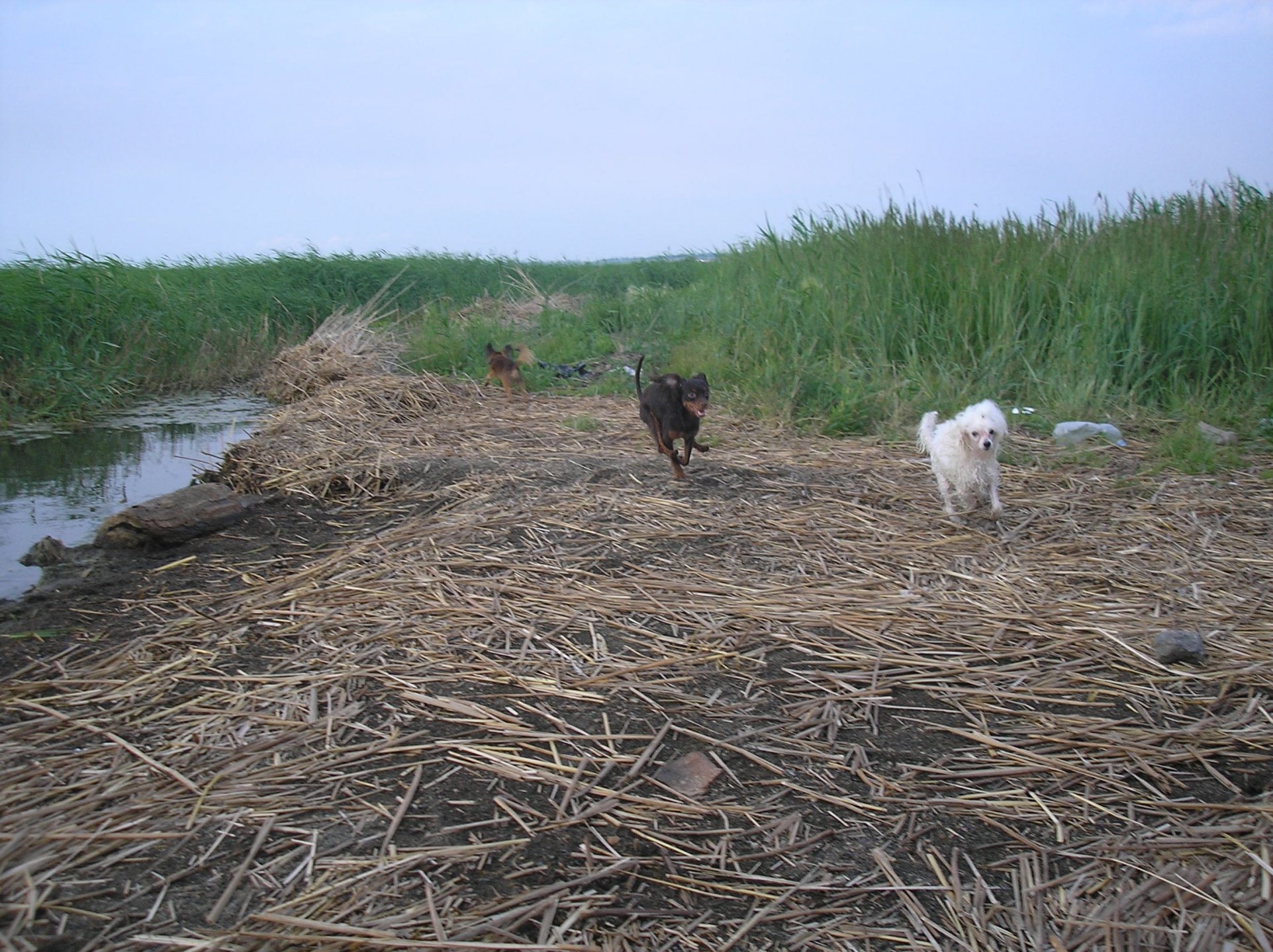 Наше Солёное Озеро славится своими целебными грязями. Знающие люди стараются весь купальный сезон обязательно посещать его. Мы с кучей собак купались в камышах :), но зато там на дне песочек. Где пляж - там грязевое дно. Полезно, а купальники потом ничем не отстирываются. Кожа смывается только с мылом)))) Нам же повезло, особенно Елисею. Он остался беленьким. Шерсть как после шикарной косметики - упругая, отличный объём, не колтунится. Так что советую там накупать собачек.  |