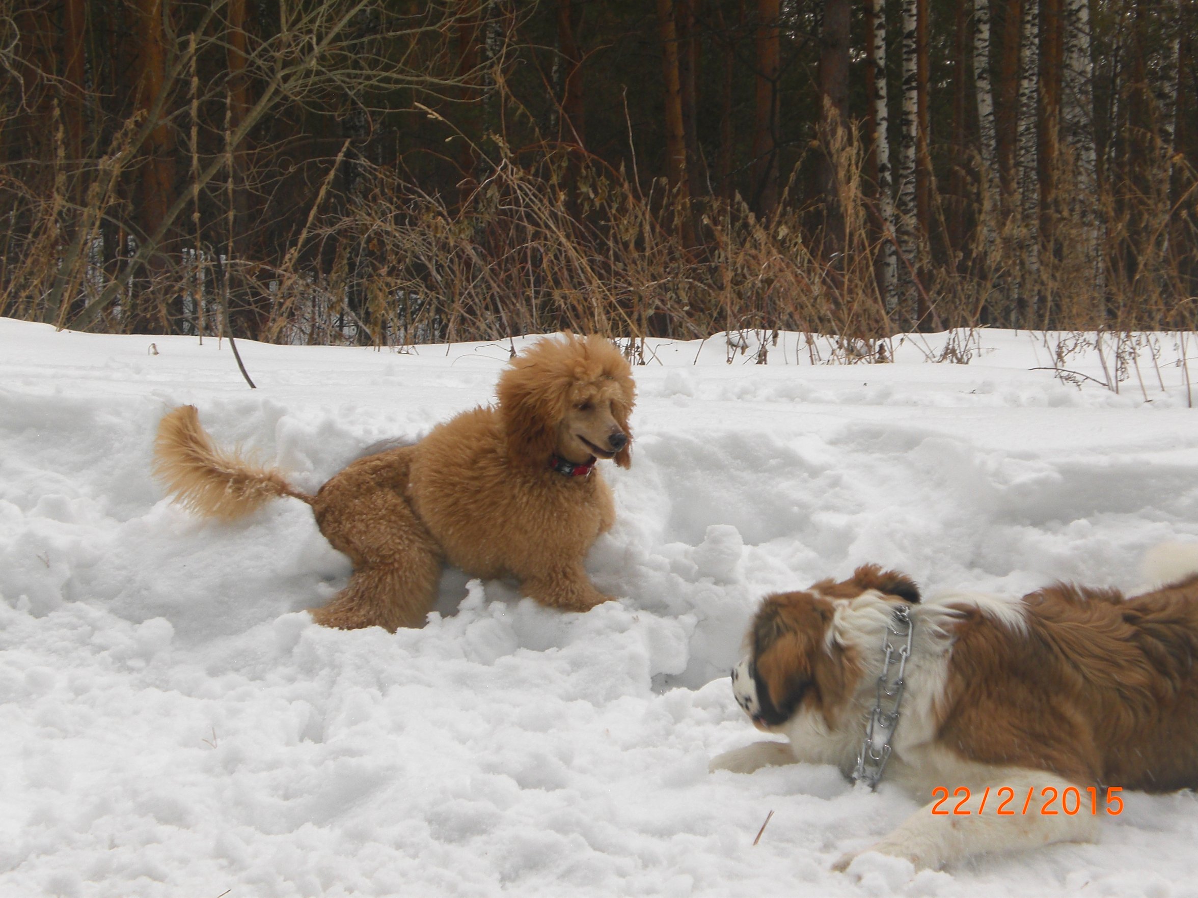 Про щенков : Ника как-то шестимесячного ротвейлера строила, его хозяин ржал над этим. Щенок все лезет и лезет, тоже не сразу понял. По величине Ники уже гораздо больше, но собаки сразу чуют, где малыш, а где взрослая. Нике пришлось пенделей тому надавать, чтобы его унять. У хозяина это не первый ротвейлер, но сказал, что никогда не видел, чтобы пудели ротвяков строили )))) _______________________________________