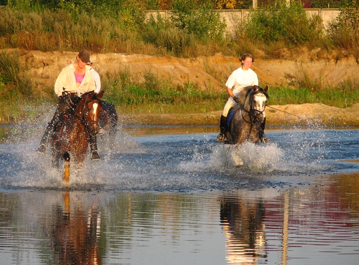 Я в глубоком детстве каждое лето на лошадях в деревню ездила и обожала их. У меня какой - то родственник дальний конюхом был, так вот, он приезжал, забирал меня с братом, и мы ехали километров 50 по лесу. классно так, лежишь в телеге на сене и в небо смотришь......