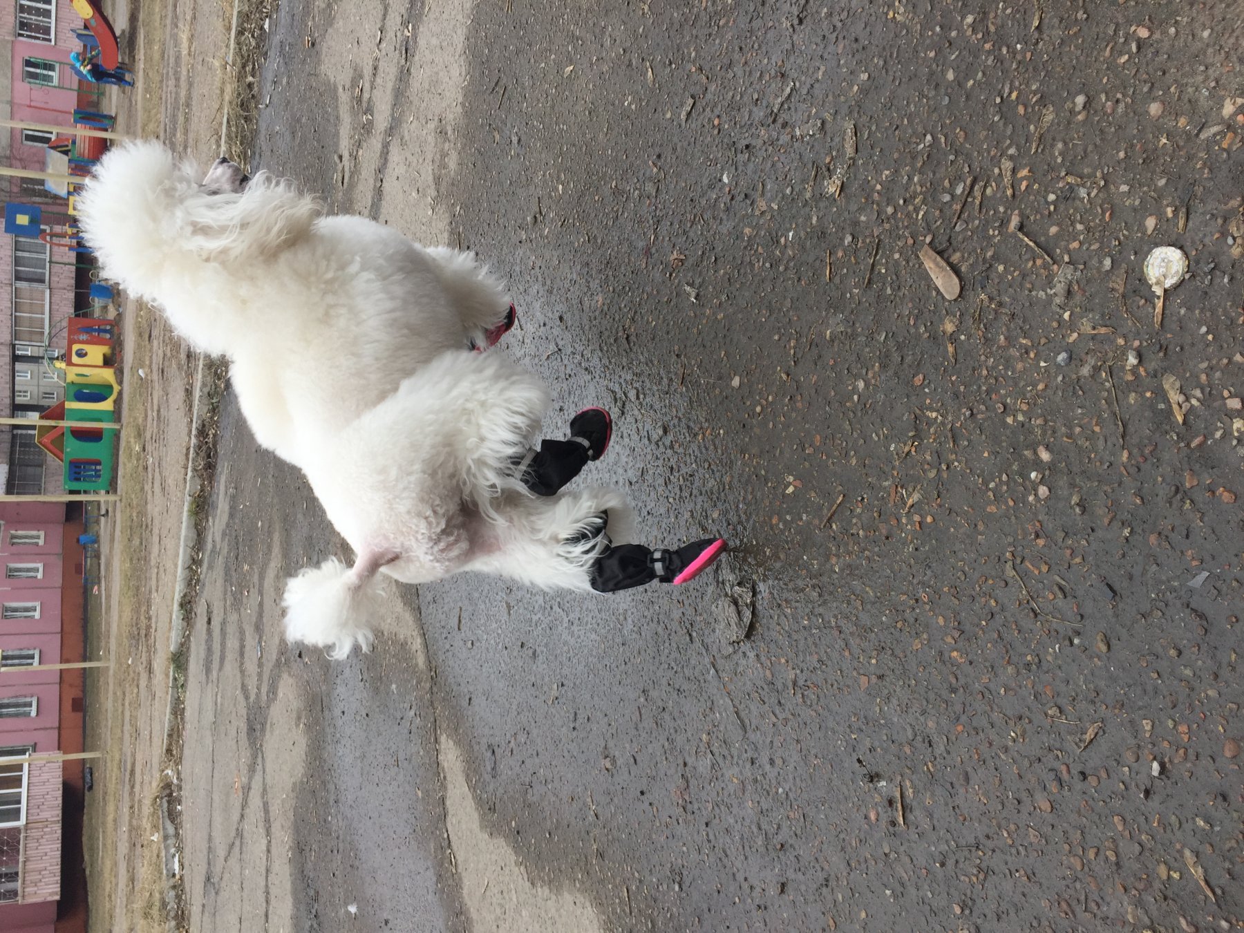 Ее зовут Стелла. Когда мы ее взяли, ей было около 4 месяцев. Там где она жила ее видимо били,потому что чуть руку вверх поднимешь она уже зажималась, даже от шуршания пакета она приходила в ужас, металась и пряталась. Забирали мы ее с вольера уличного, там где сидели большие собаки, благо на улице было лето. По лестнице ходить она не умела, к улице тоже не была приучена. Такое ощущение, что собака постоянно была взаперти... Я когда позвонила по объявлению (я звонила по коричневой суке, но ее к тому моменту продали и осталась только Стелла) и мне сказали, что щенка посадили в вольер к большим собакам, мне стало не по себе, я летела за ней не думая даже о том, что белый окрас меня не интересовал совершенно. Потом я созванивалась с теми, кто купил коричневую суку (они ее просто через неделю выставили на продажу) сказали,что хотели чтобы она на пеленку в туалет ходила, а она ходила где попало и к тому же у нее не хватает каких-то зубов, что выставки она посещать не может, поэтому она им теперь тоже не нужна(( Я просто была в шоке от людей, если я взяла в дом животное и какое бы оно потом не оказалось, я бы никогда не стала продавать заново или хуже того выкидывать... Ведь счастье то не в выставках, в первую очередь это член семьи, как ребеночек. Как говорится, мы в ответе за тех, кого приручили...