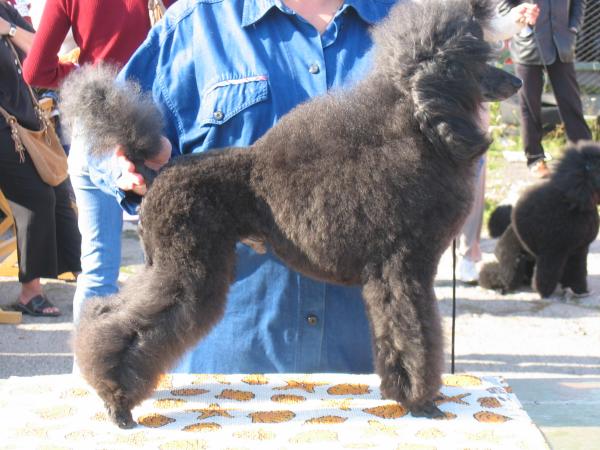 ЗЫ, так к чему это я??? А к тому - НУ НА ФИГА ВЯЗАТЬ ЧЕРНЫХ КОБЕЛЕЙ С КОРИЧНЕВЫМ ГЕНОМ С БЕЛЫМИ СУКАМИ.. И НАРУШЕНИЙ ВРОДЕ НЕТ ПО СОЧЕТАНИЮ ОКРАСОВ, А ПОЛУЧАЕМ Г........ итак, фото с той же выставки нормальной черной собаки |