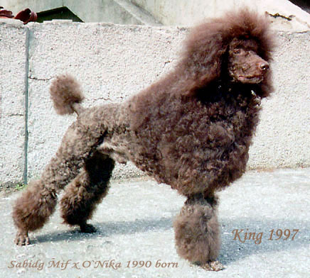 Он не стал "легендарной собакой", хотя имел титул "Чемпион Европейского Союза Пудель-клубов", имел два CACIB, естественно, полученные за рубежом потому, что в нашей стране тогда еще не было международных выставок..... Вязали его очень мало. Да и те потомки, которые получились от этих немногочисленных вязок, совершенно не интересовали "больших пуделистов" СПК в начале 90-х годов. (Надо быть справедливой и сказать, что в те годы большим пуделистам вообще было ни до чего. Порода дошла до грани исчезновения. Почти как во время Великой Отечественной Войны. Но после войны удалось восстановить поголовье из сохранившихся отечественных собак, а после "перестройки" порода возродилась почти исключительно за счёт привоза иностранцев.) Так и ушли в небытие, как вода в песок... Лишь у собак питомника "Черная Орхидея" Веры Королевой, еще пульсирует тоненькая струйка этой кровной линии.... САБИДЖ МИФ был получен в инбридинге 2х2 на Абирано ф.Монтевидео (зав.М.Кёллер, вл.Н.Масленникова), а вторая половина родословной - это московские и ленинградские пудели так называемых "старых кровей" _______________________________________