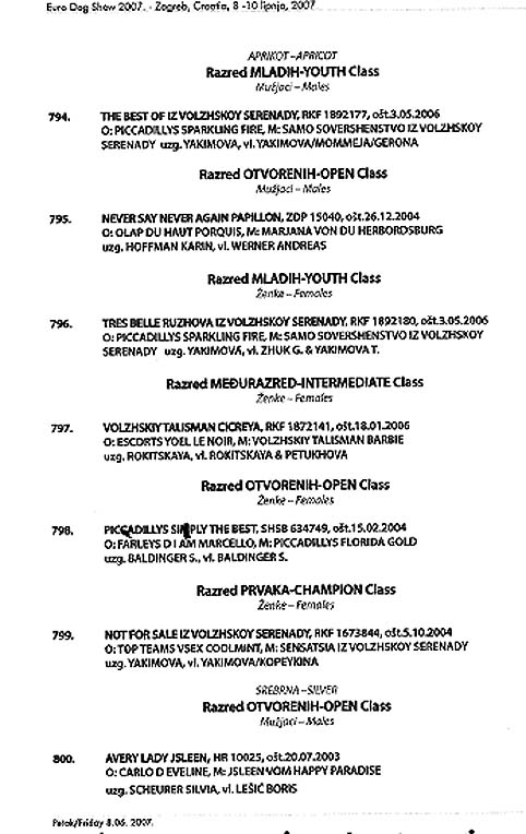 Так же хочу высказать огромное спасибо Ирине Кирюшиной владелице питомника ирландских волкодавов "Из Волшебного леса" за то, что выслала мне по E-mail листы каталога по пуделям, едва вернувшись из Загреба ![]() vera-Tim добавил(а) [date]1181653575[/date]: [Боже ж ты мой, больших цветных было только 9 по каталогу. Вопрос - были ли они все в ринге? Это после 16 в Хельсинки и 34 в Познани........ И еще вопрос, кто был ЮЧЕ в юниорах и лучшим кобелем? _______________________________________