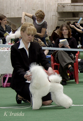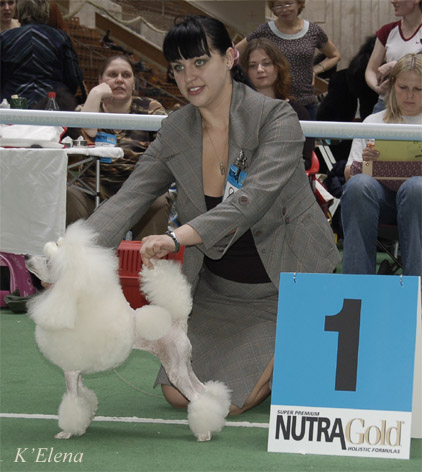 КОБЕЛИ Класс щенков 037. DORIAN GRAY'S KORIPFAEE, РКФ ?, чип, 20.09.07. Вл. Малафеева ------------------очень переспективный Т.А., Ярославль О: Jilan's Celebrity М: Dorian Gray's Anastasia Класс юниоров 038. KILIMANGARO MOUNTAINS EARL'S LEGEND, РКФ 2062248, чип, 18.03.07. Вл. Малафеева ТА, Ярославль-------------------------------------ЮКЧК О: Hocki Silver Top Narcis M: M-Kaira Kira's Bruzovske Udoli СУКИ Класс щенков 039. ЛЕГГЕРО ДАНЗАТОРИ ОЛМЕЙРА, щ/к, BKF 026, 01.09.07. Вл. Малафеева Т.А., Москва------------------очень переспективный -------------------------------------------------лучший щенок в серебристых тоях О: Леггеро Данзатори Гламур М: Леггеро Данзатори Бианка Вл. Малафеева Класс юниоров 040. SHAHEREZADA IZ SEVERNOI VENECII, РКФ 2080352, НСВ 303,--------------------ЮКЧК, Лучший юниор, ВОВ, ------------------------------------------------------2-я в Юниорском Бэсте 08.04.07. Вл. Никитина О, Санкт-Петербург О: Similine's Oh-La-Lal-Laa I Luv U Babe M: Nevskaja Zhemchuzhina Dlya Severnoy Venetsii Интерчемпион, Ч Мира, России, СПК, РКФ, Эстонии, Финляндии. Вл. Никитина 041. ЛЕГГЕРО ДАНЗАТОРИ ЛАРСЕНА, щ/к, BKF 021, 02.06.07. Вл. Плешанова и Малафеева, Кинешма----------------------2-я в классе О: Similine's Oh-La-Lal-Laa I Luv U Babe M: Стиль Руси от Кутюр Велюровая Волна Вл. Малафеева 042. ОЧАРОВАНИЕ ИРИСКА, щ/к, NMZ 129, 19.07.07. Вл. Чичева В.И., Москва--------------------------------------------- не было О: Очарование Жульен Сорванец Ч России. М: Очарование Чикита Миа Вл. Чичева Класс открытии 043. ZHEMCHUZHINA IMPERATORA, РКФ 1699544, WMB 223, 20.08.04.---(а это моя умница)---КЧК, Чемпион Клуба Вл. Кудакова А.А., Москва ЧЕМПИОН РОССИИ, РКФ О: Serebrjany Vek Imperator Moy Интерчемпион, Ч России, СПК, Гранд, РКФ, Литвы, Белоруссии, Латвиии, Финляндии. Вл. Старчак М: Serebrjany Vek Lady D Вл. Карлов Класс чемпионов 044. GENTLY BORN TIK ТАК TUIA, РКФ 1483819, АЗБ 320, 28.08.03. Вл. ----------------------------------- КЧК Трофимова Е., МО ЮНЫЙ ЧЕМПИОН РОССИИ, ЧЕМПИОН РОССИИ, БЕЛОРУССИИ О: Gently Born Almaz М: Gently Born Eva Вл. Трофимова и Власова Если что-то неверно, то пожалуйста, поправьтеВсем тоям серебрушкам мои поздравления. Наконец-то стали видеть на монопородках тоев серебристых кобелей.