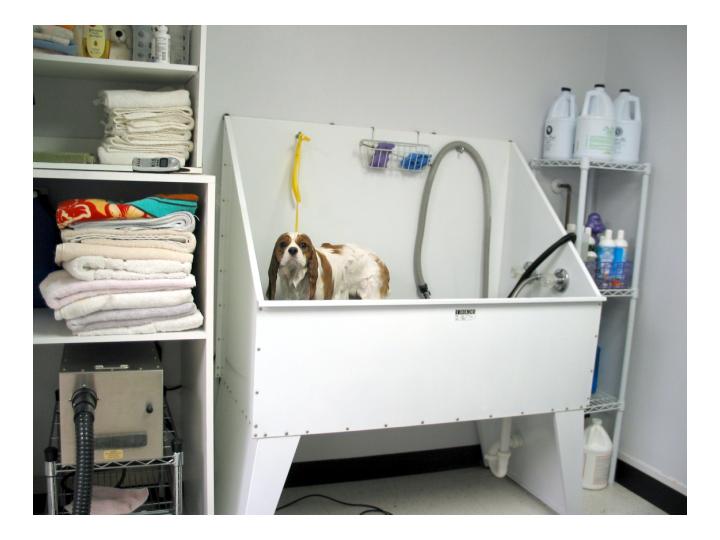По поводу освещения хочу поделиться,что пользуюсь только лампой дневного света,вешала её над рабочим столом, и в месте где был раньше проведено электричество,на потолке,мне вот только зеркало к сожалению нет места куда пристроить,а ведь это какой эффект,когда стрижешь и какая помощь в работе.Ванна для мытья я приспособила купив сидячую,и сделала на высоту своего роста,чтобы спина при мытье не болела,под ванной специально оставлено свободное место,мыть легче,и если трубу прочистить нужно всегда легче добираться.На стенке в углу ванной есть крюк,с цепочкой, там пристёгиваю собачек,чтоб из ванны побег не устроили.стол гидравлический стоит недалеко от ванны,мне легко поднять любую собаку с высоты стола и перенести(не надорвавшись)в ванну. ![]() ![]() ![]()