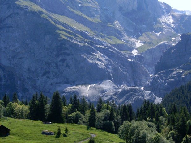 На последней фотке: раньше там между горами, этой, что на картинке и другой, рядом, Мёнх (монах) по-моему, можно было пройти, а сейчас запретили. И всё там стало такое игрушечное, для туристов. Даже телефонная кабинка была невдалеке. |