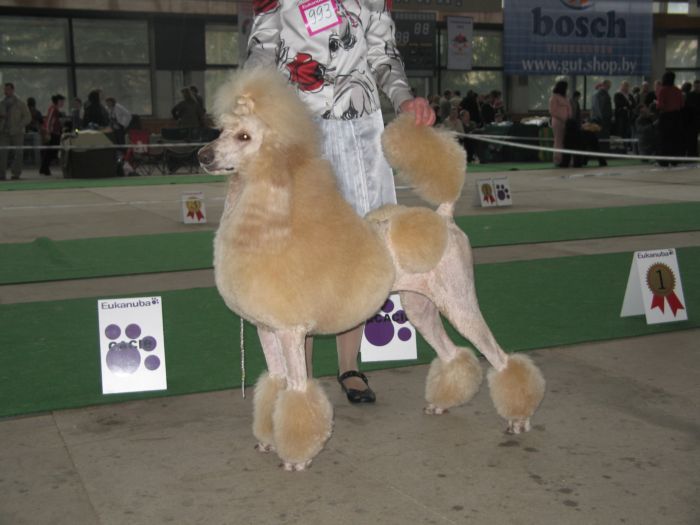 Многократно встречались на выставках и в БЭСТ- х. Не думаю, что Галина обидется, если я в качестве примера "неправильного" окраса абрикоса по мнению MONIQUE VAN BREMPT приведу эту собаку. _______________________________________