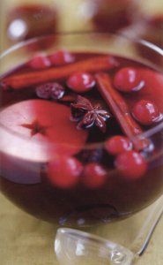 ЯБЛОЧНЫЙ ГЛИНТВЕЙН Горячее пряное вино с фруктами. Ингредиенты: На 12 бокалов: 2 х 750 мл бутылки красного вина, например, Мерло (чем лучше вино, тем вкуснее) 1 л качественного мутного яблочного сока 115 г сахара 1 длинная палочка корицы, поломанная пополам 2 бадьяна 3 ст л апельсинового ликера Куантро или Курасао горсть (примерно, 100 г) замороженных ягод 3 яблока с красной кожурой, порезанных на кружочки Инструкции: 1. Перелить вино и яблочный сок в большую кастрюлю, добавить сахар, палочку корицы и бадьян. Слегка нагреть, помешав раз или два, пока сахар не растворится. Затем продолжать медленно нагревать еще 15 мин. 2. Перед тем, как подавать, добавить апельсиновый ликер, добавить замороженные ягоды и кусочки яблок. _______________________________________