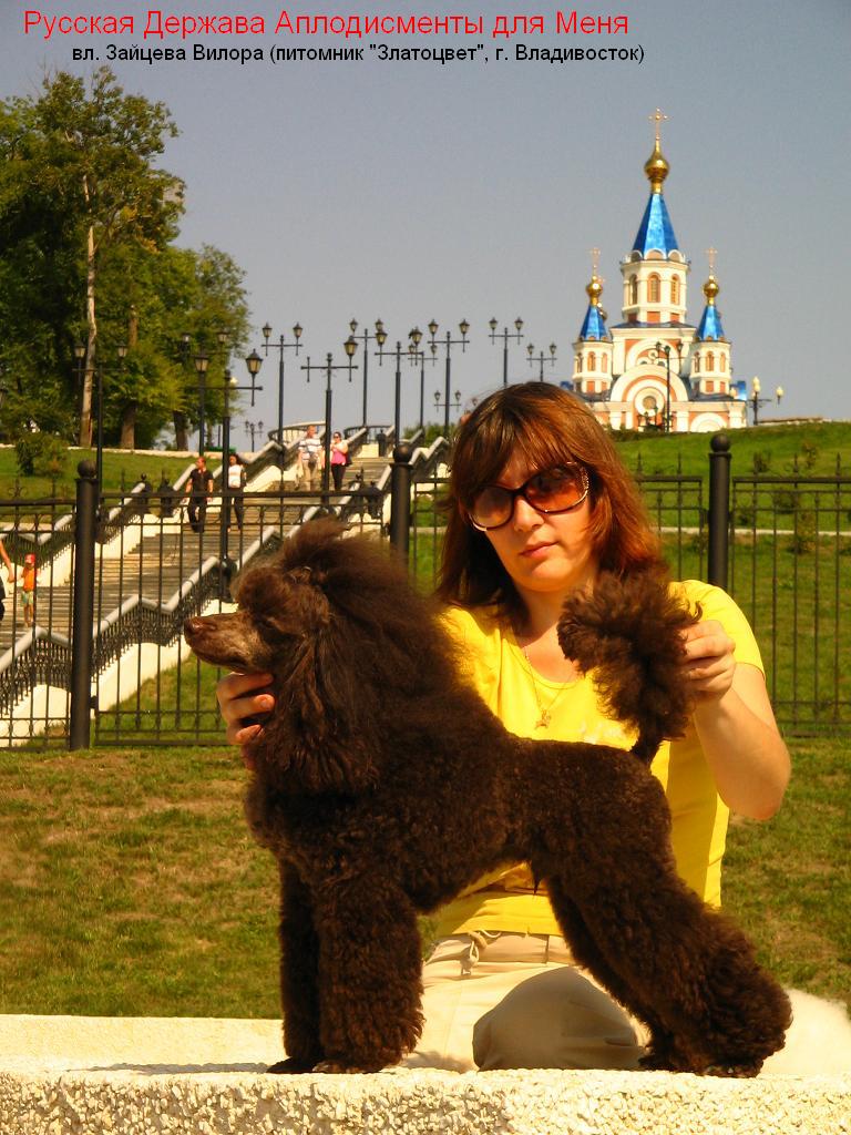 Поздравляю всех победителей и призеров выставок в Хабаровске! Особые поздравления Зайцевой Вилоре с победами ее собак на выставках в Хабаровске: Златоцвет Женская Уловка (ЛПП, лучший карлик на моно, BIS-3, ЛПП на CACIBe) и Русская Держава Аплодисменты для Меня (ЛК, КЧК на моно)! Поздравляем сынулю!