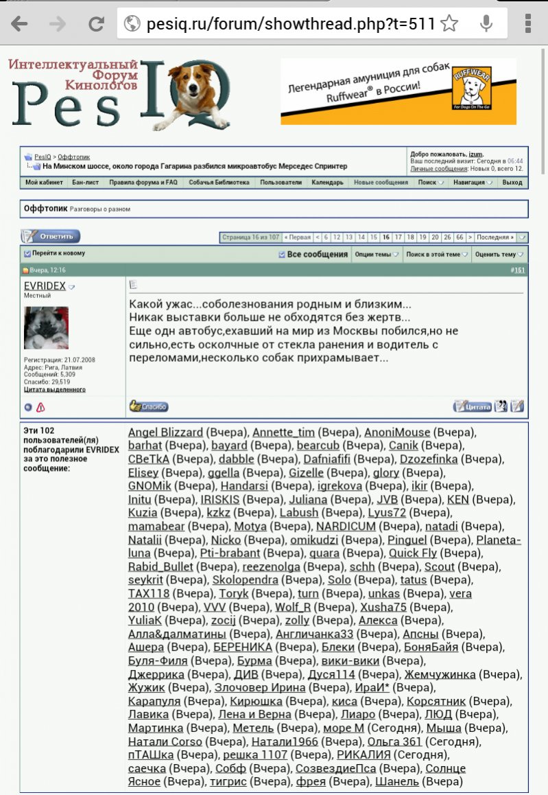 Во-первых, это вчерашнее видео. Во-вторых - это предварительная информация. Виновник аварии официально еще НЕ озвучен. (слежу за темой на Песике, в которой отписываются те, кто на аварию выезжал, кто вытаскивал и кремировал собак) И уж тем более во вчерашнем видео не будет заключения техников-трассологов, которое является обязательным при ДТП. Поэтому не надо "назначать" виновного по предварительным данным. _______________________________________