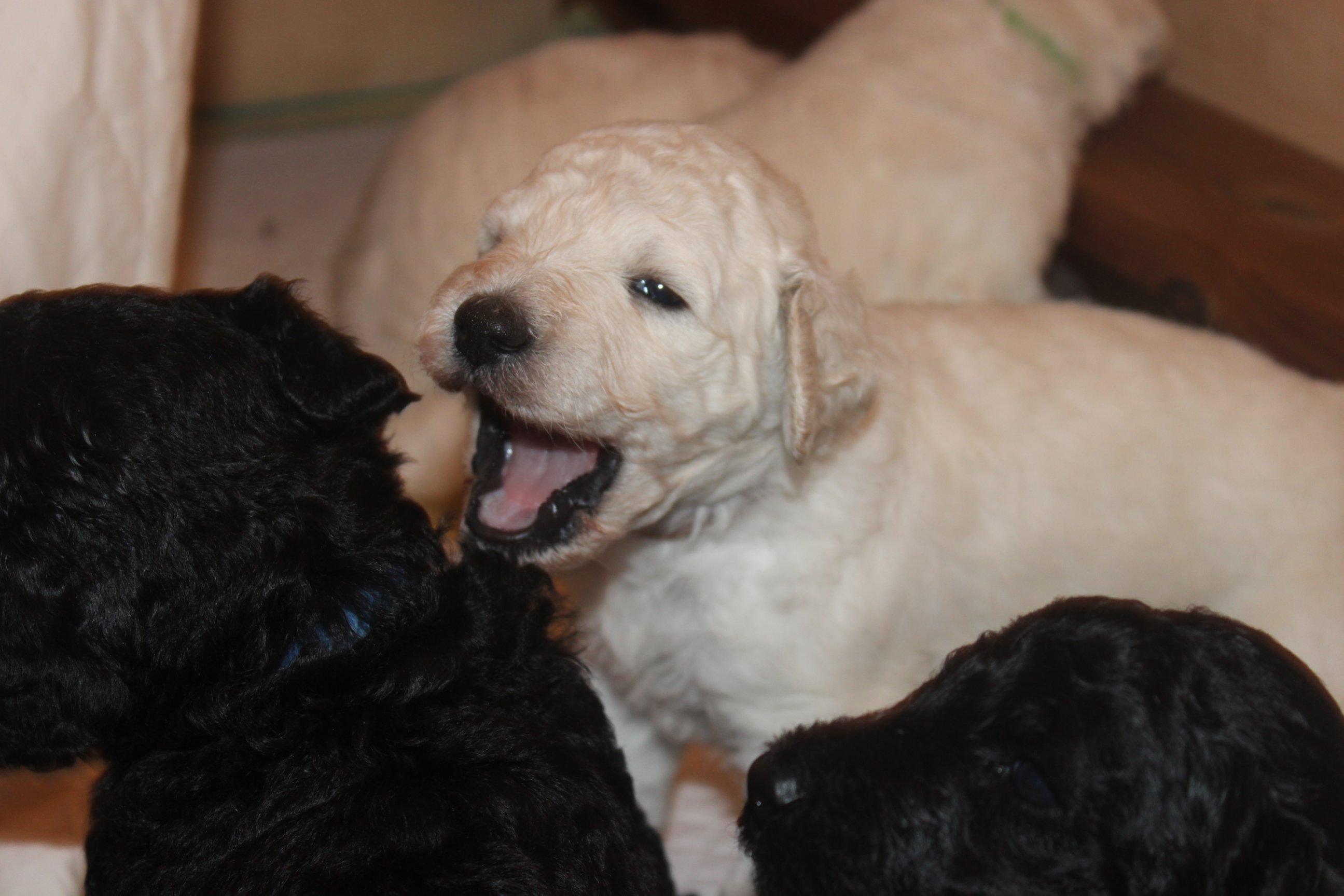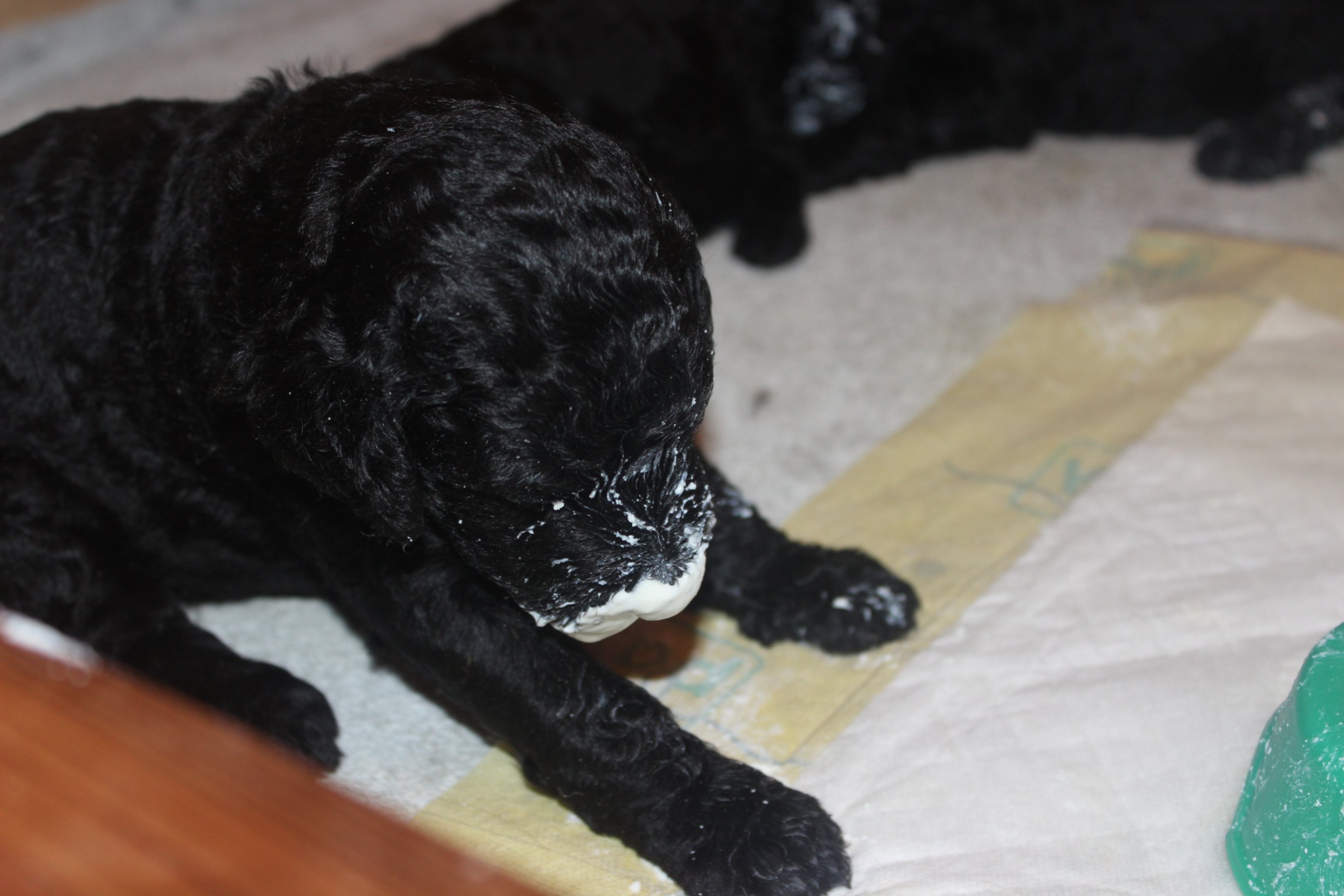 Да-да-да, наши милые щенята-пуделята повзрослели, утроили вес и начали знакомство с гастрономическими изысками. Пожелать щенкам приятного аппетита можно по номеру 8-923-224-84-34