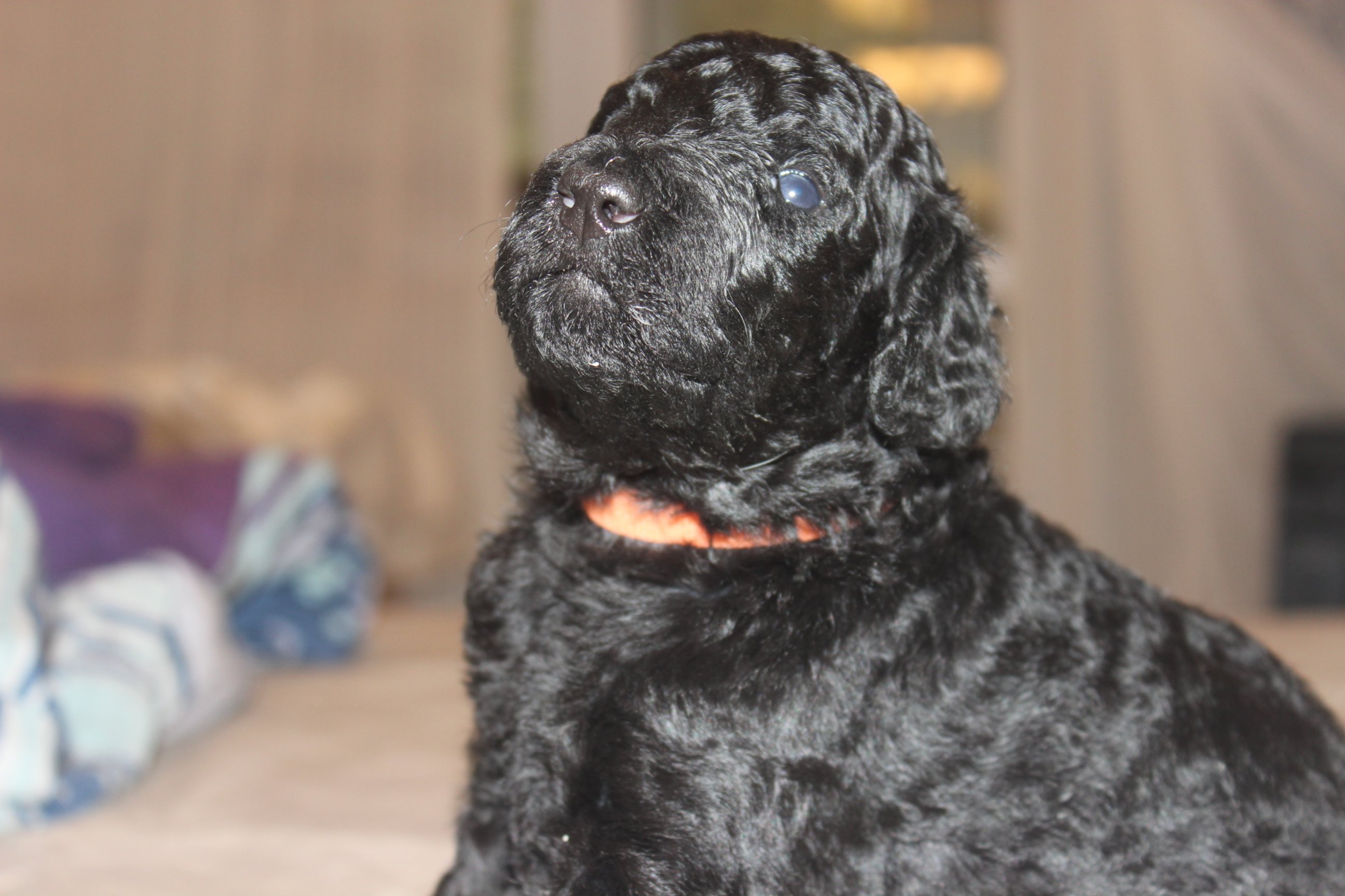 В это осеннее воскресное утро мы расскажем вам о гиганте Черноморе (Chief of the Black Sea). Молчалив, спокоен, уравновешен, очень гордый. Что есть, то есть: он самый главный щенок, авторитет среди своих, и он это знает. Маршем обойдя территорию, он занимает стратегически верную позицию, чтобы все видеть и держать под контролем. Паника на новом месте? Это не про него. Он спокойно будет обозревать все вокруг с высоты своего роста. Да и другие щенки уже поняли, что с ним шутки плохи и битва проиграна заранее. Поэтому обычно молча ждут, когда Черномор наиграется, если уж он начал. Хотя, на самом деле, Черномор очень любит ласку, он маленький плюшевый мишка, весом больше 2 кг, который при виде руки тут же начинает просить ласки, ложась кверху пузом, как бы говоря "ну гладь меня уже, гладь".