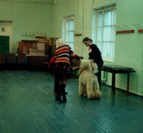 Полечу в Атланту на семинар по покраске, буду брать клас по чрним пуделиам. А красить надо закривая ненужние участки пленкои, наносить краску поочередно, затем смивать, сушить и стричь по рисунку . |