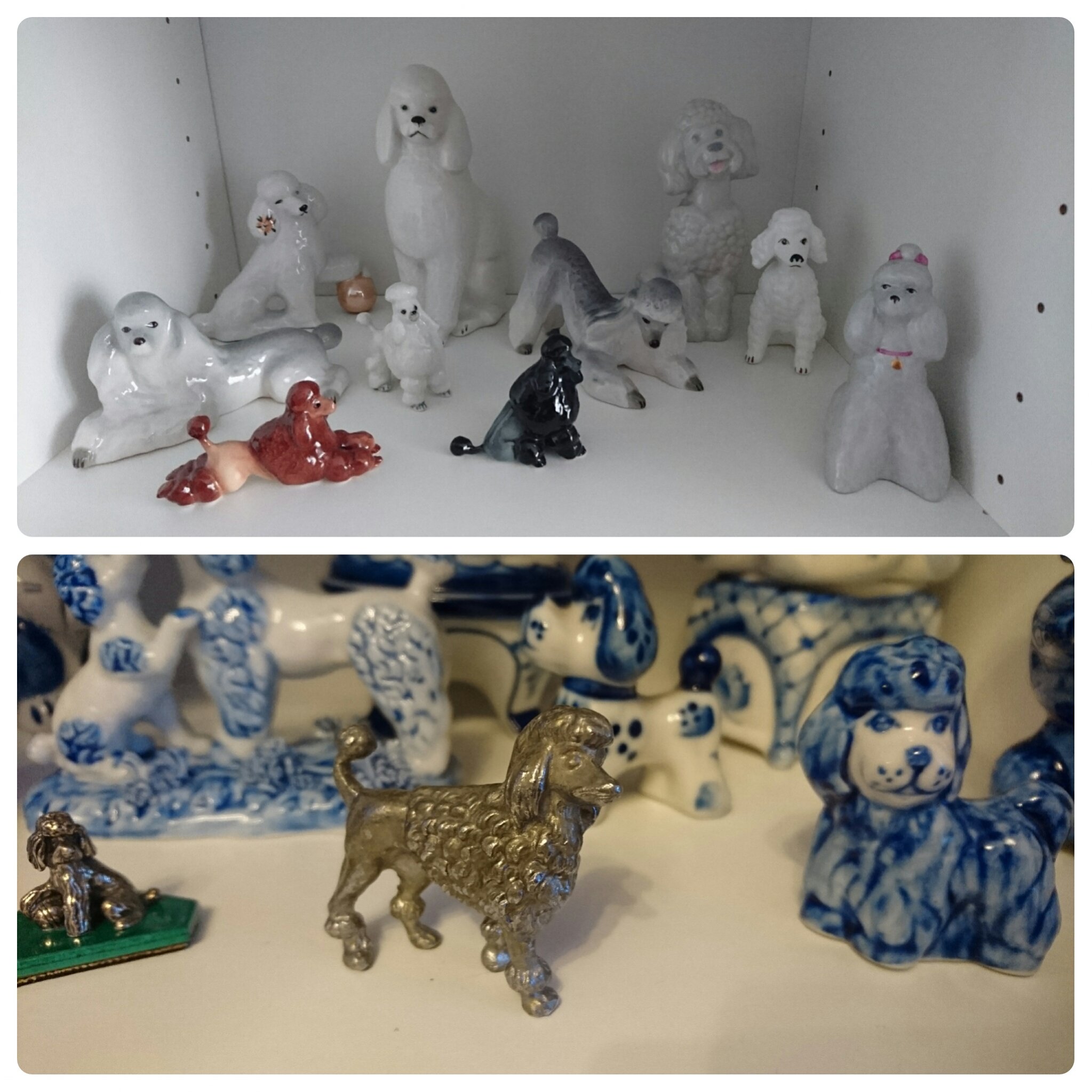 Очень давно хотела и искала предложение, которое меня бы устроило по цене и виду самой статуэтки, без зеленого оттенка и пятен. 1. Статуэтка "Пудель". Фарфор, роспись. УССР, Киевский экспериментальный керамико-художественный завод: 2. Металлический тяжелый пудель и Фарфоровый который занял свое место на полке) _______________________________________