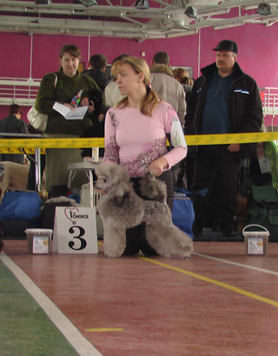 А молодой кобель Серебряный Век Оскар Императора(2-я выставка в его жизни)получил первый ЮКЧК и встал 3-им в конкурсе на лучшего юниора выставки(из 7-ми юниоров).